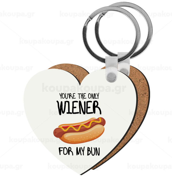 You re the only wiener for my bun, Μπρελόκ Ξύλινο καρδιά MDF