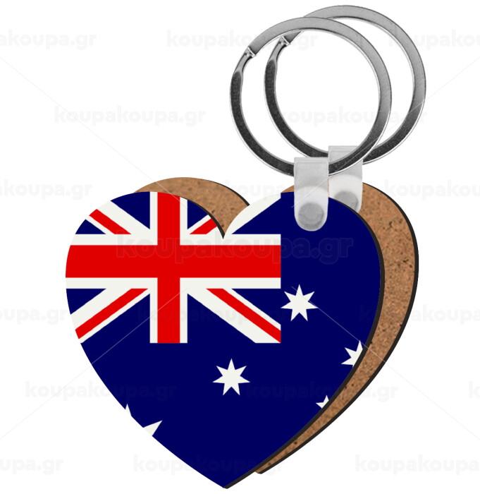 Australia flag, Μπρελόκ Ξύλινο καρδιά MDF