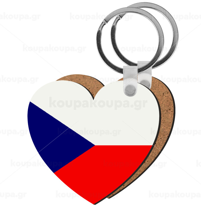 Czechia flag, Μπρελόκ Ξύλινο καρδιά MDF
