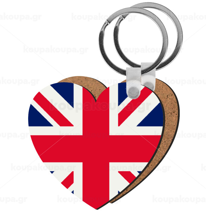 England flag, Μπρελόκ Ξύλινο καρδιά MDF