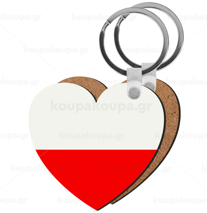 Poland flag, Μπρελόκ Ξύλινο καρδιά MDF