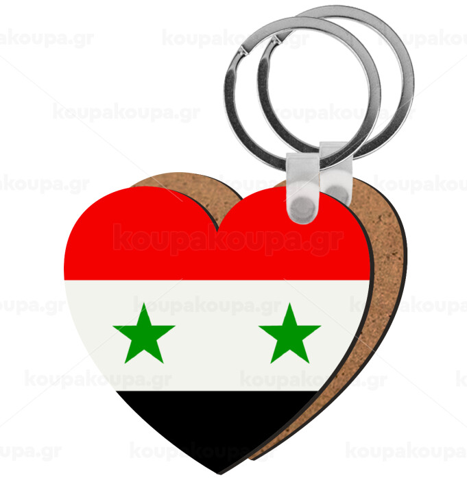 Syria flag, Μπρελόκ Ξύλινο καρδιά MDF