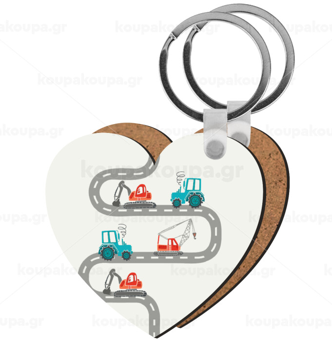 excavator along road, Μπρελόκ Ξύλινο καρδιά MDF