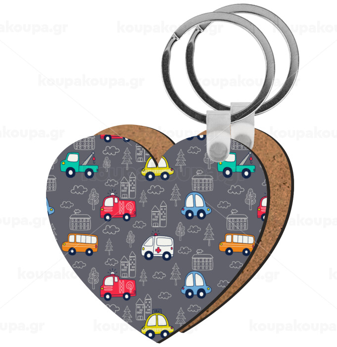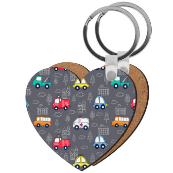 Hand drawn childish set with cars, Μπρελόκ Ξύλινο καρδιά MDF