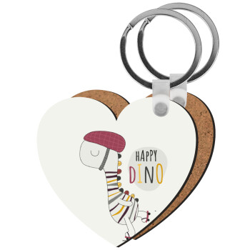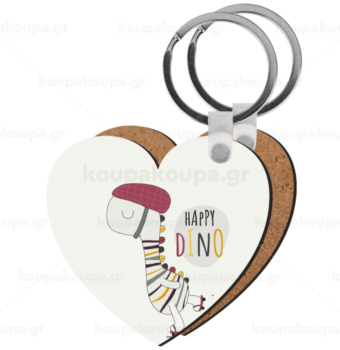 Happy Dino, Μπρελόκ Ξύλινο καρδιά MDF