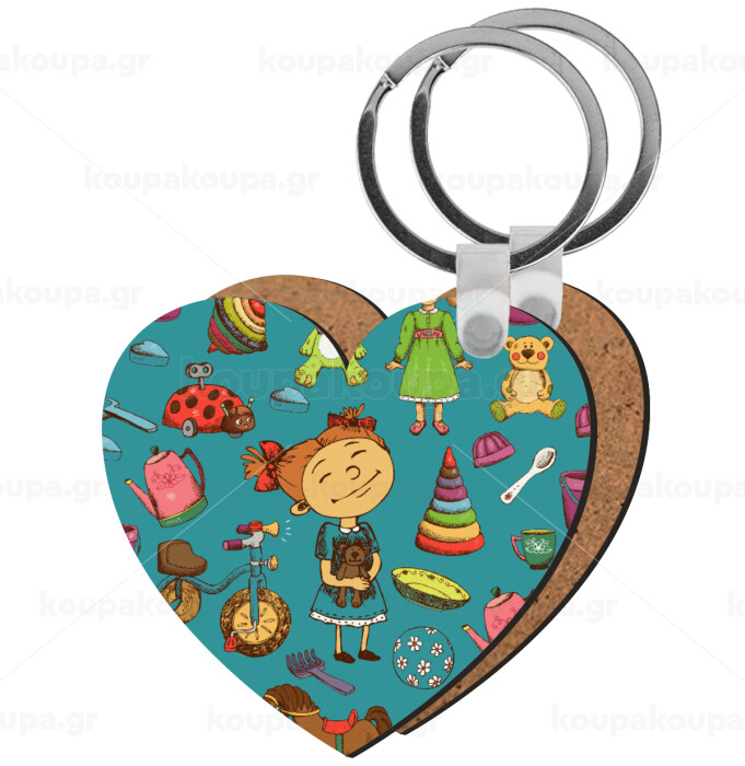 Toys Girl, Μπρελόκ Ξύλινο καρδιά MDF