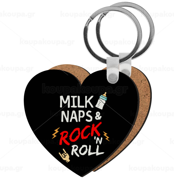 milk naps and Rock n' Roll, Μπρελόκ Ξύλινο καρδιά MDF