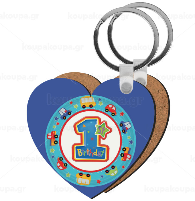 Happy 1st Birthday, Μπρελόκ Ξύλινο καρδιά MDF