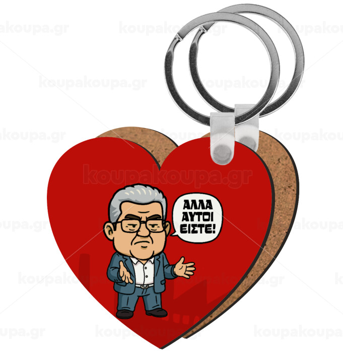 Κουτσούμπας, "Αλλά αυτοί είστε!", Μπρελόκ Ξύλινο καρδιά MDF