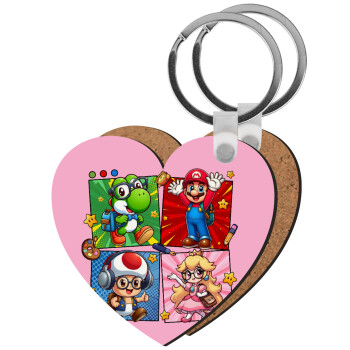 Back to the School Mario & Friends, Μπρελόκ Ξύλινο καρδιά MDF