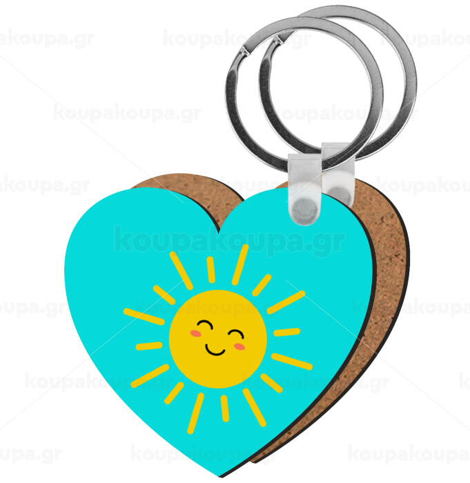 Happy sun, Μπρελόκ Ξύλινο καρδιά MDF