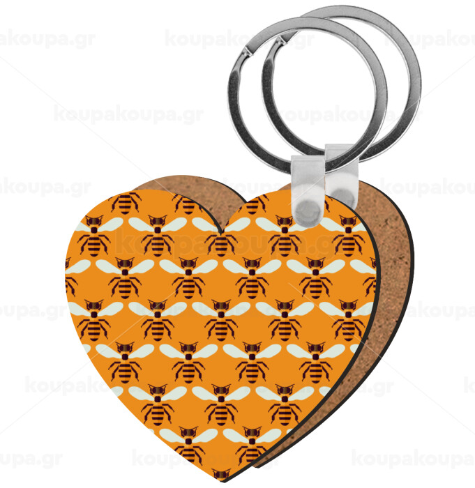 Bee, Μπρελόκ Ξύλινο καρδιά MDF