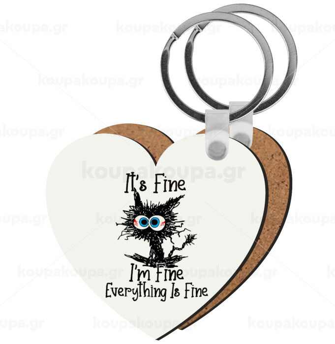 Cat, It's Fine I'm Fine Everything Is Fine, Μπρελόκ Ξύλινο καρδιά MDF