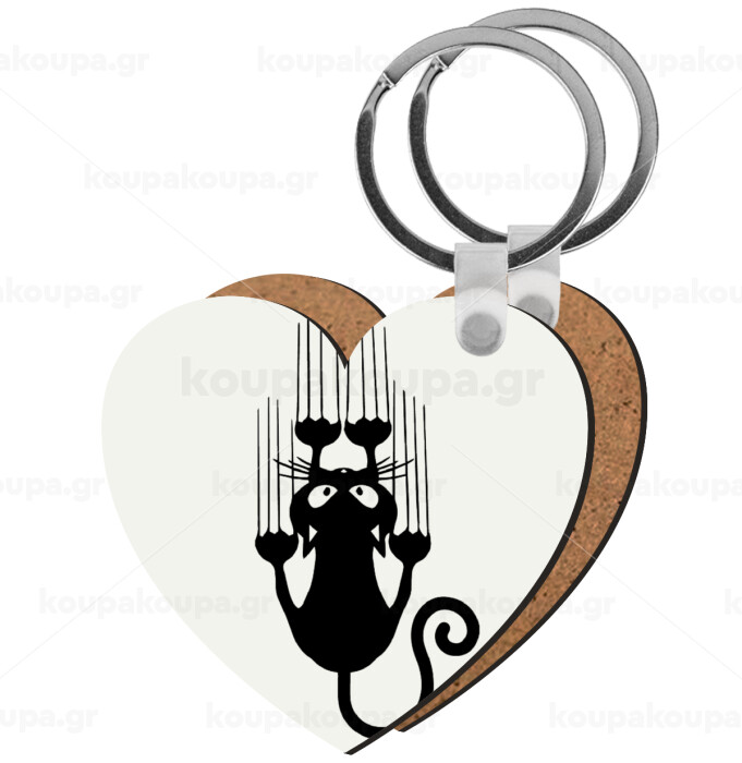 Cat scratching, Μπρελόκ Ξύλινο καρδιά MDF