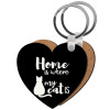Home is where my cat is!, Μπρελόκ Ξύλινο καρδιά MDF