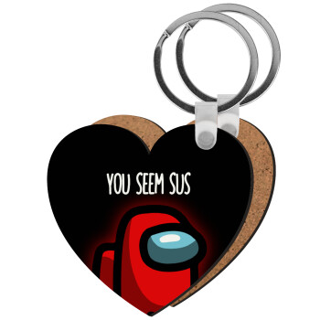 Among US, you seem sus, Μπρελόκ Ξύλινο καρδιά MDF
