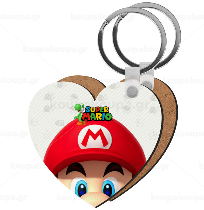 Super mario, Μπρελόκ Ξύλινο καρδιά MDF