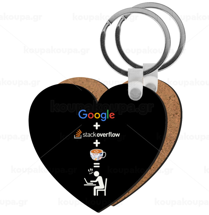 Google + Stack overflow + Coffee, Μπρελόκ Ξύλινο καρδιά MDF