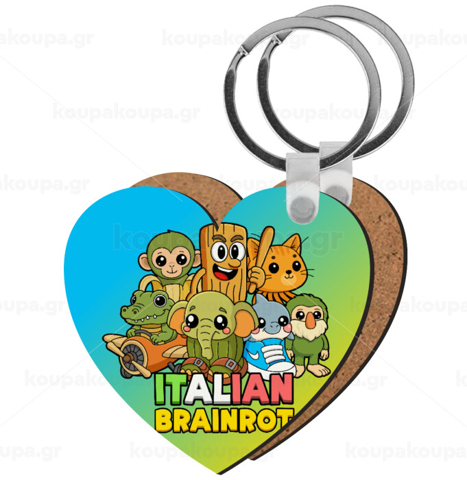 Italian Brainrot friends, Μπρελόκ Ξύλινο καρδιά MDF