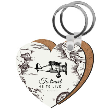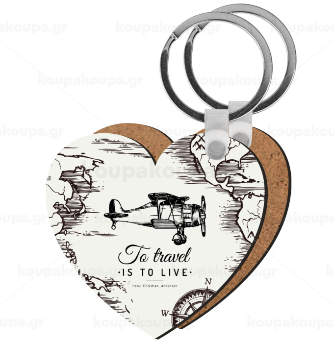 To travel is to live, Μπρελόκ Ξύλινο καρδιά MDF