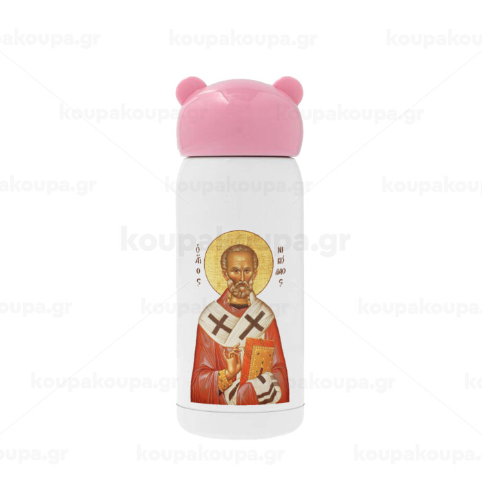 Saint Nicholas orthodox , Pink stainless steel thermal flask, 320ml