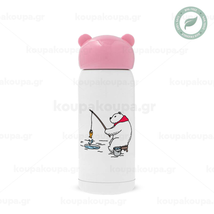 Bear fishing, Pink stainless steel thermal flask, 320ml