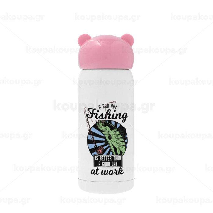 A bad day FISHING is better than a good day at work, Pink stainless steel thermal flask, 320ml