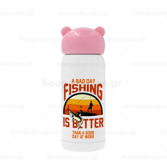 A bad day FISHING is better than a good day at work, Pink stainless steel thermal flask, 320ml