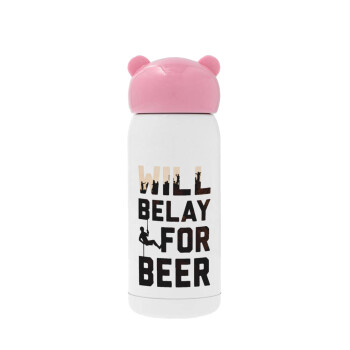 Will Belay For Beer, Pink stainless steel thermal flask, 320ml