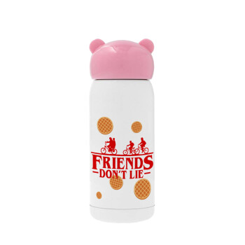 Friends Don't Lie, Stranger Things, Pink stainless steel thermal flask, 320ml