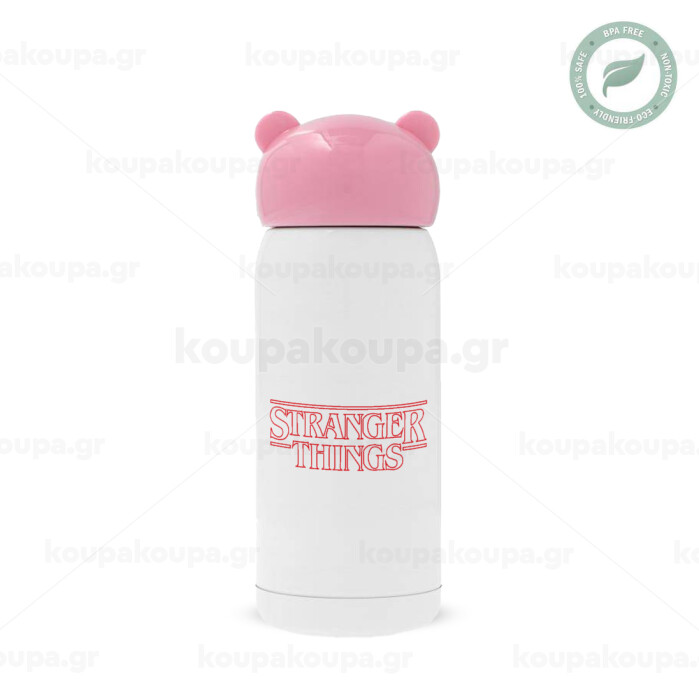 Stranger Things Logo, Pink stainless steel thermal flask, 320ml