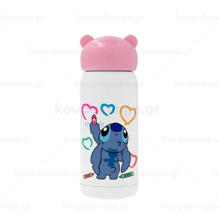 Lilo & Stitch painting, Pink stainless steel thermal flask, 320ml