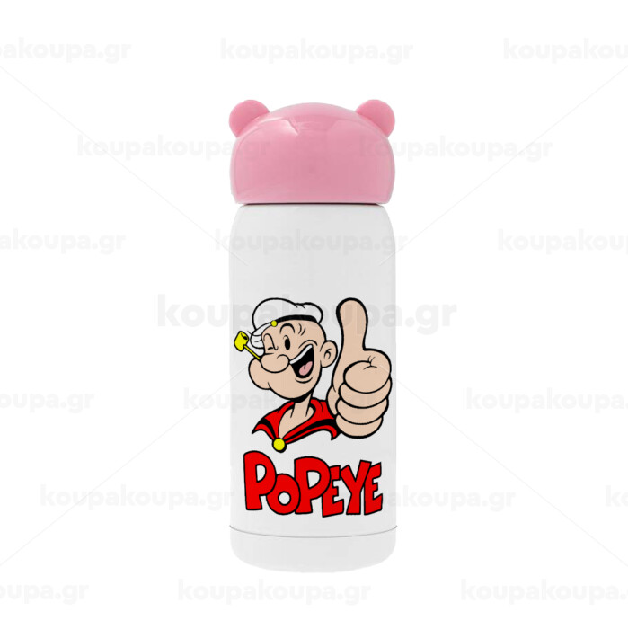 Popeye the sailor man, Pink stainless steel thermal flask, 320ml