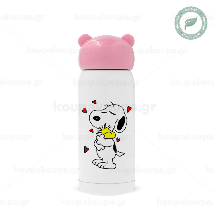 Snoopy Love, Pink stainless steel thermal flask, 320ml