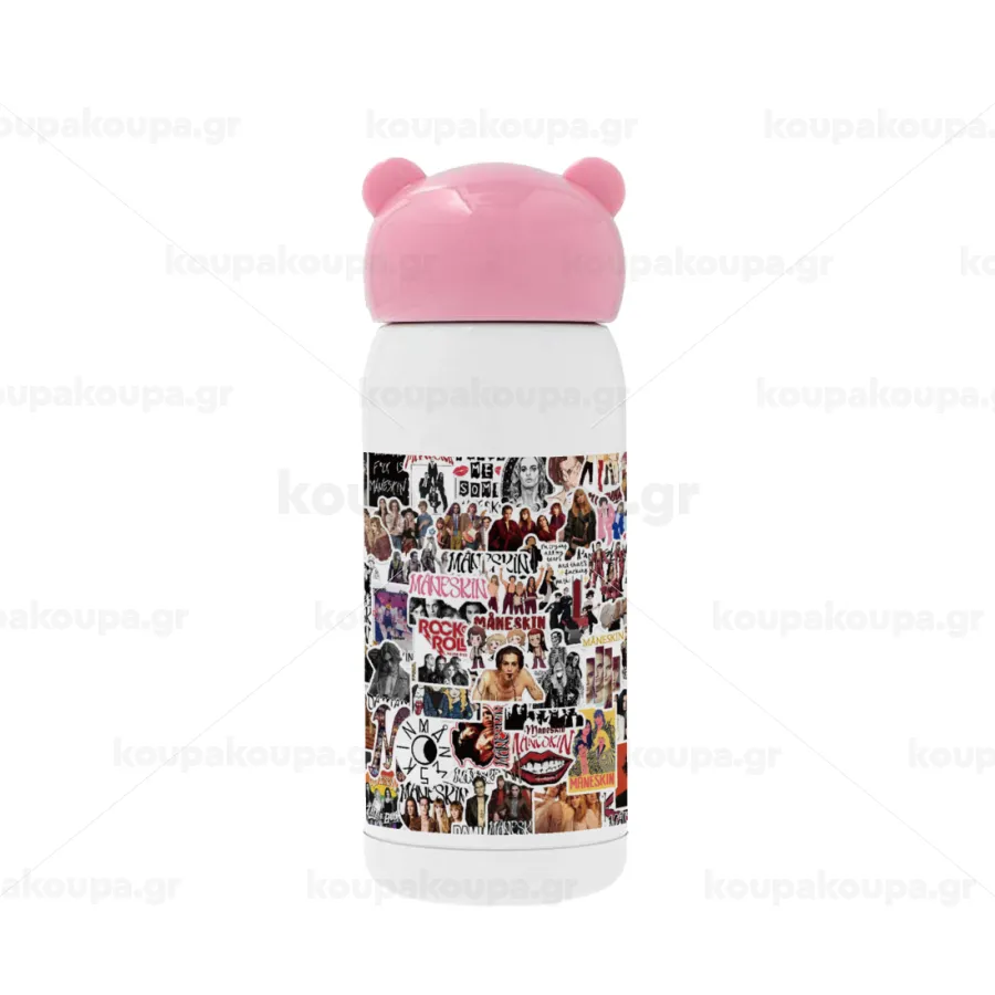 Maneskin stickers, Pink stainless steel thermal flask, 320ml