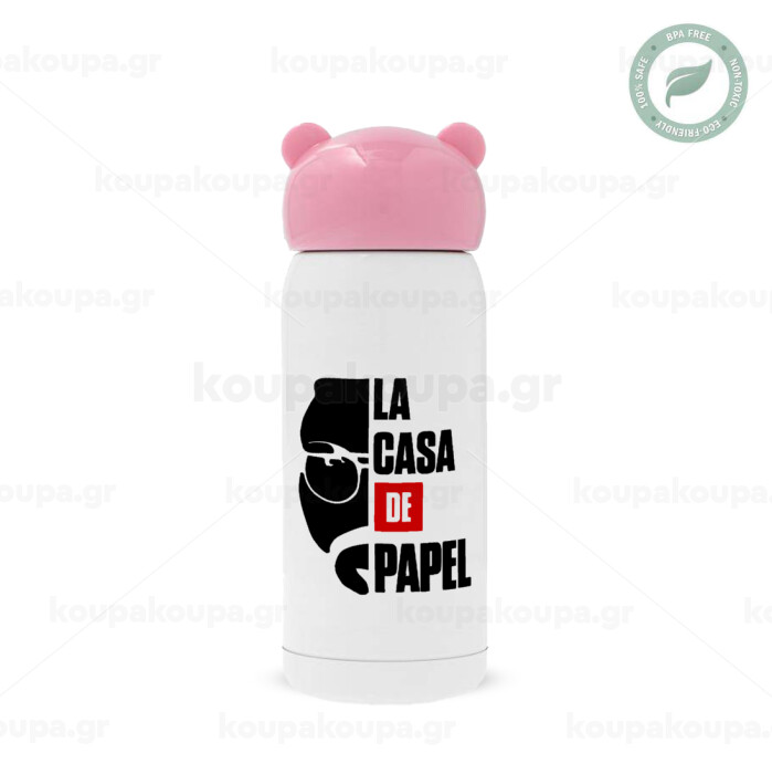 La casa de papel, Pink stainless steel thermal flask, 320ml