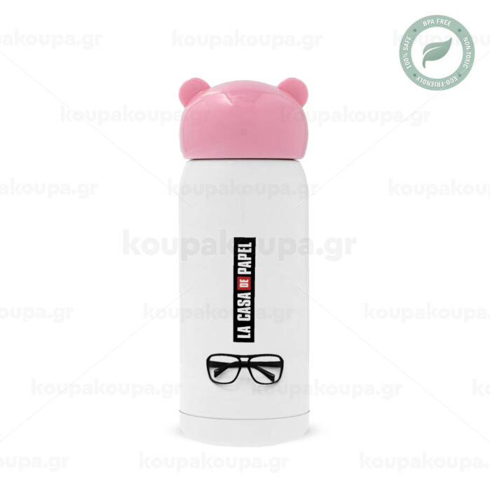 la professor, γυαλιά, Pink stainless steel thermal flask, 320ml