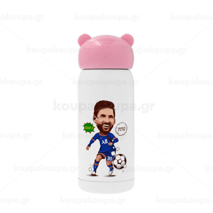 Lionel Messi drawing, Pink stainless steel thermal flask, 320ml