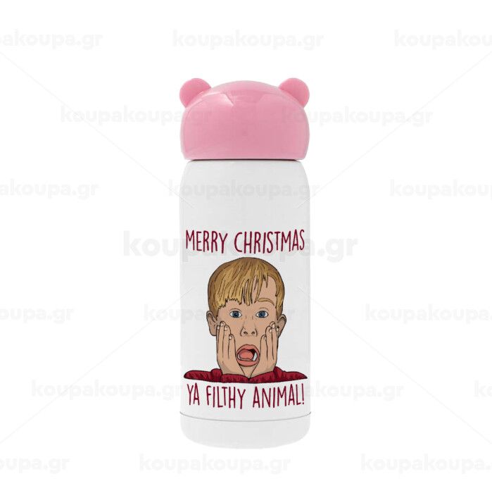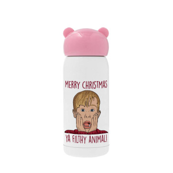 home alone, Merry Christmas ya filthy animal, Pink stainless steel thermal flask, 320ml