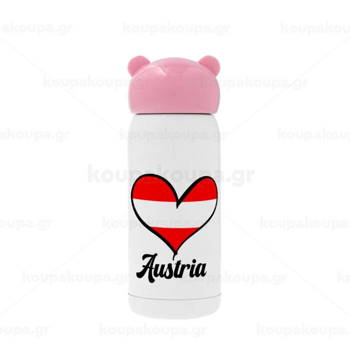 Austria flag, Pink stainless steel thermal flask, 320ml