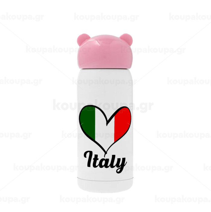 Italy flag, Pink stainless steel thermal flask, 320ml