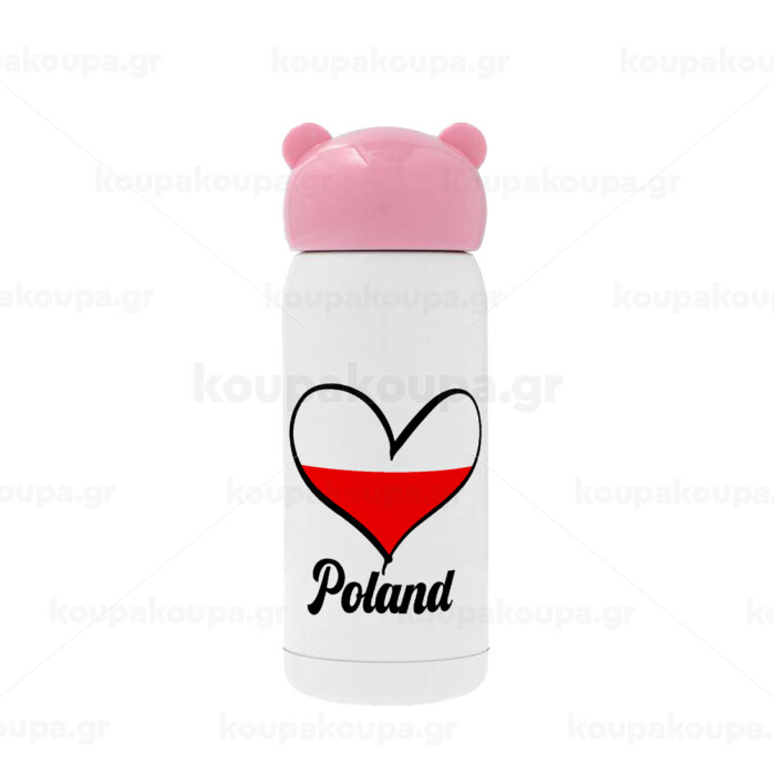 Poland flag, Pink stainless steel thermal flask, 320ml