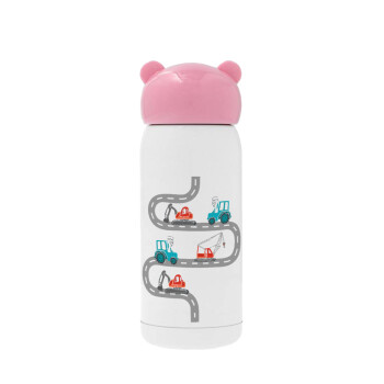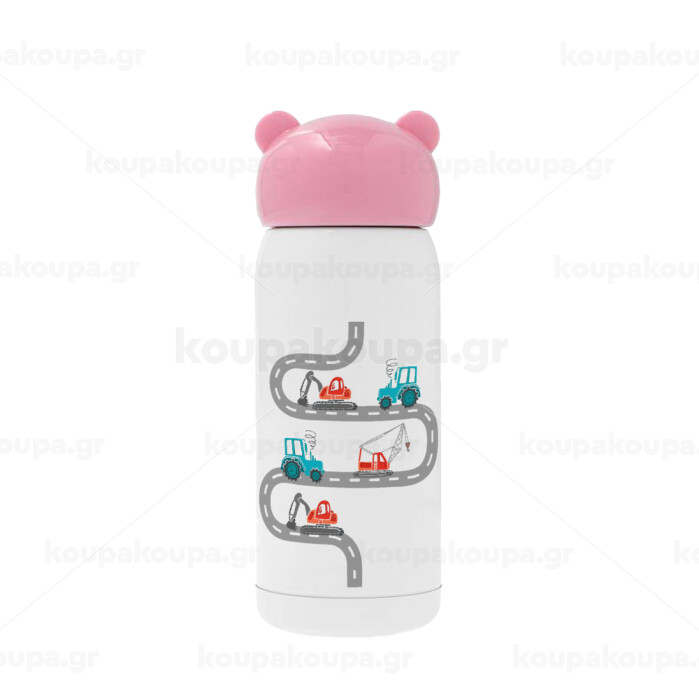 excavator along road, Pink stainless steel thermal flask, 320ml