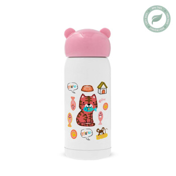 Cats and Fishes, Pink stainless steel thermal flask, 320ml