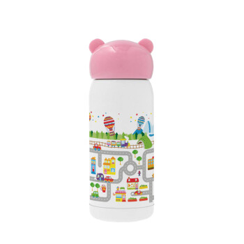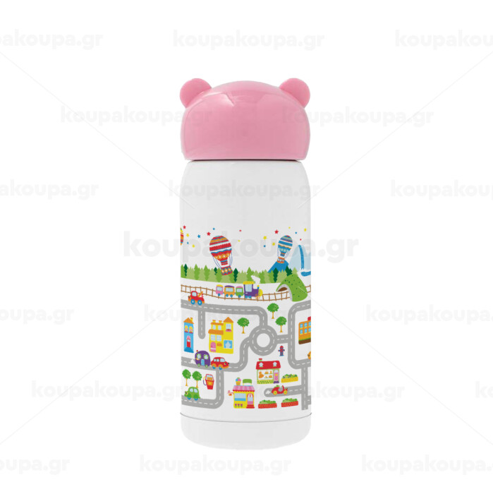 City road track maps, Pink stainless steel thermal flask, 320ml