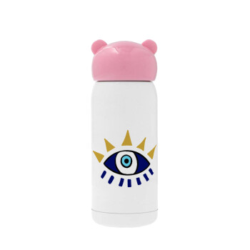 blue evil eye, Pink stainless steel thermal flask, 320ml