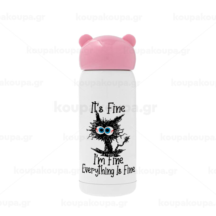 Cat, It's Fine I'm Fine Everything Is Fine, Pink stainless steel thermal flask, 320ml