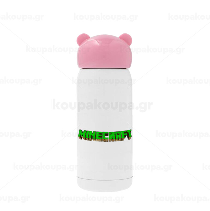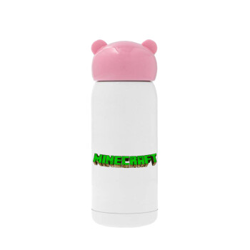 Minecraft logo green, Pink stainless steel thermal flask, 320ml