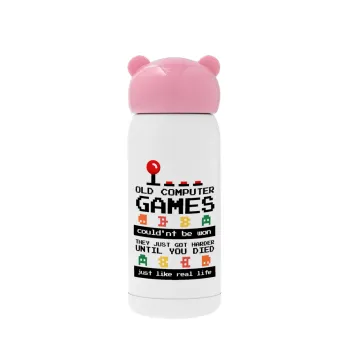 OLD computer games couldn't be won just like real life!, Pink stainless steel thermal flask, 320ml