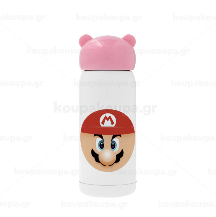 Super mario flat, Pink stainless steel thermal flask, 320ml